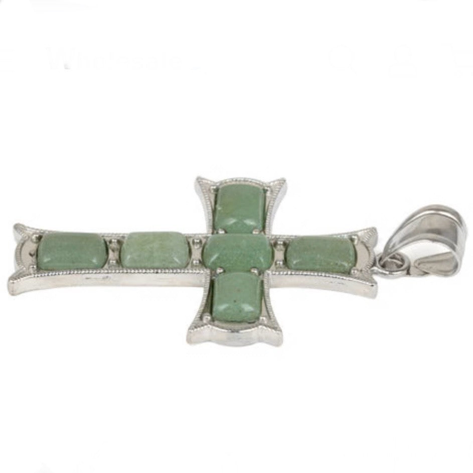 34x52mm Cushion Green Aventurine Cross Necklace Pendant New