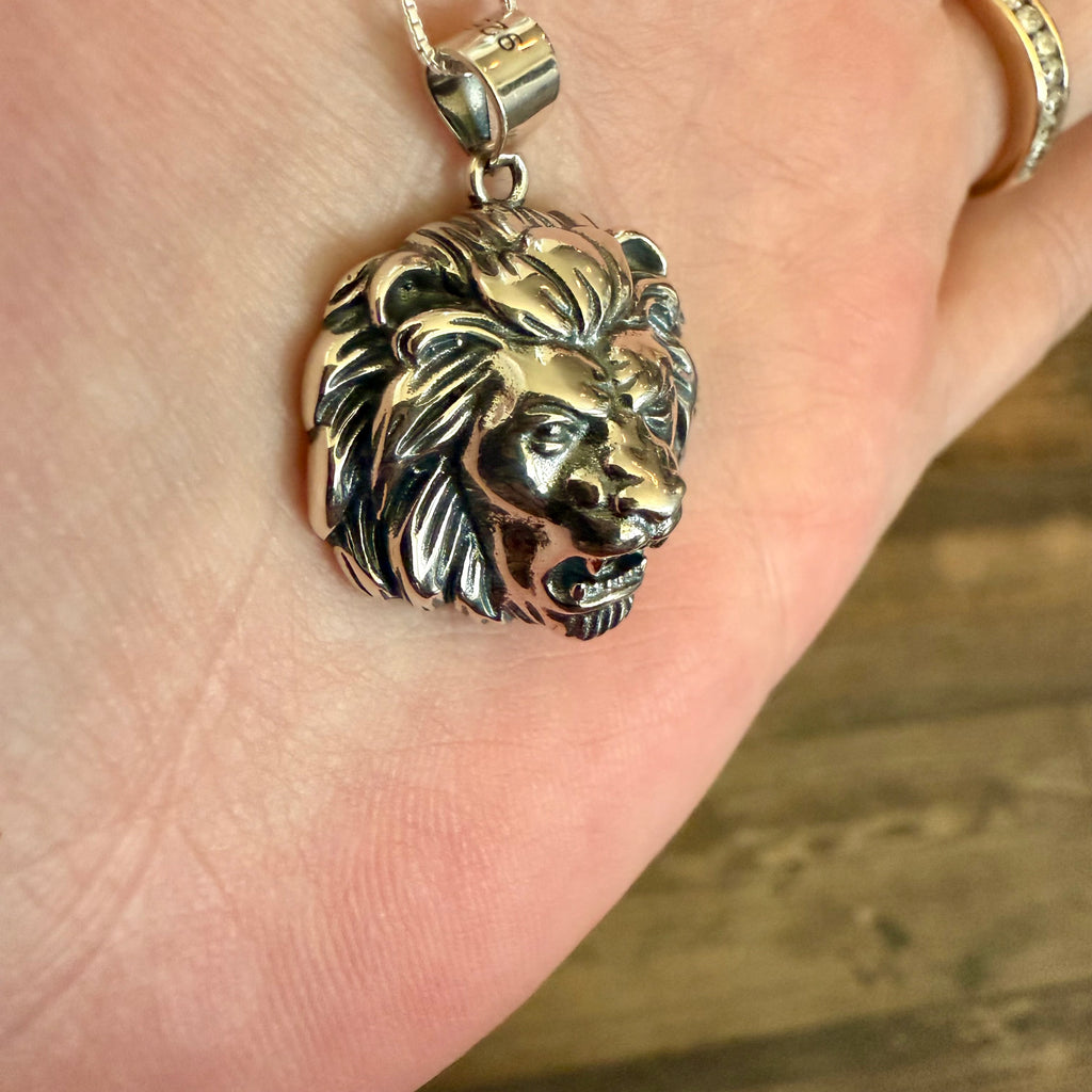 Bold 925 Sterling Silver Lion Head Charm Pendant Chain Necklace Unisex New