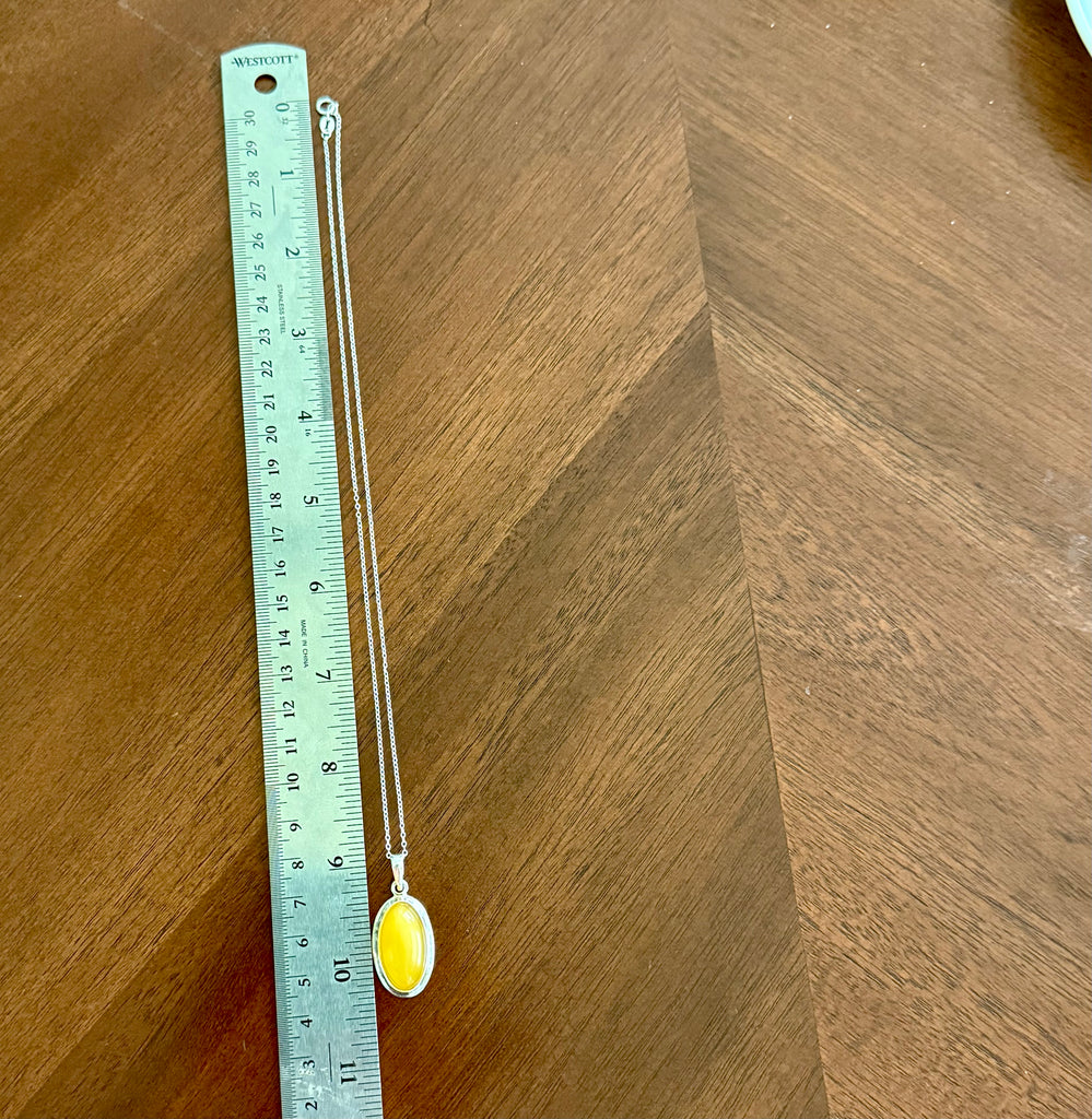 Natural Butterscotch Baltic Amber Oval Framed Pendant Necklace Sterling Silver New