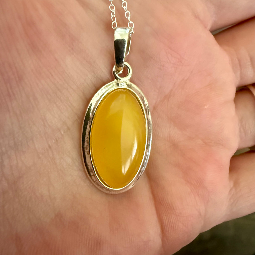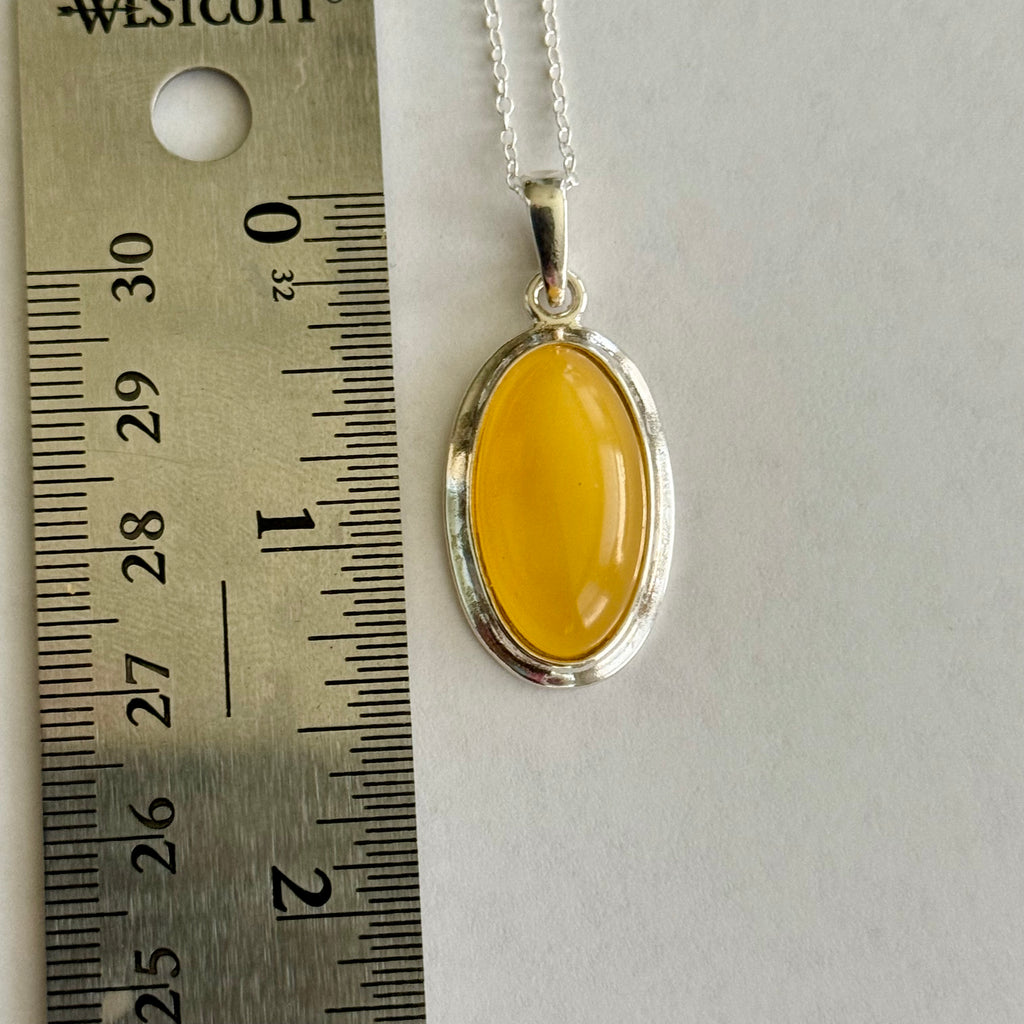 Natural Butterscotch Baltic Amber Oval Framed Pendant Necklace Sterling Silver