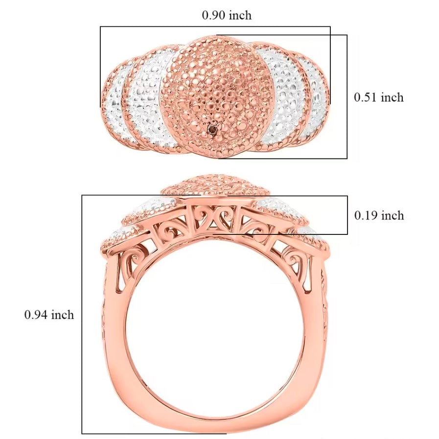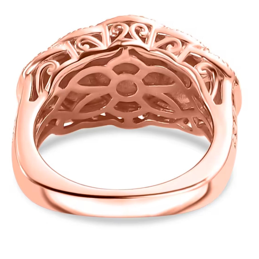 Natural Champagne Diamond Accent Scalloped Ring in Platinum Bond & 18K Rose Gold Size 6