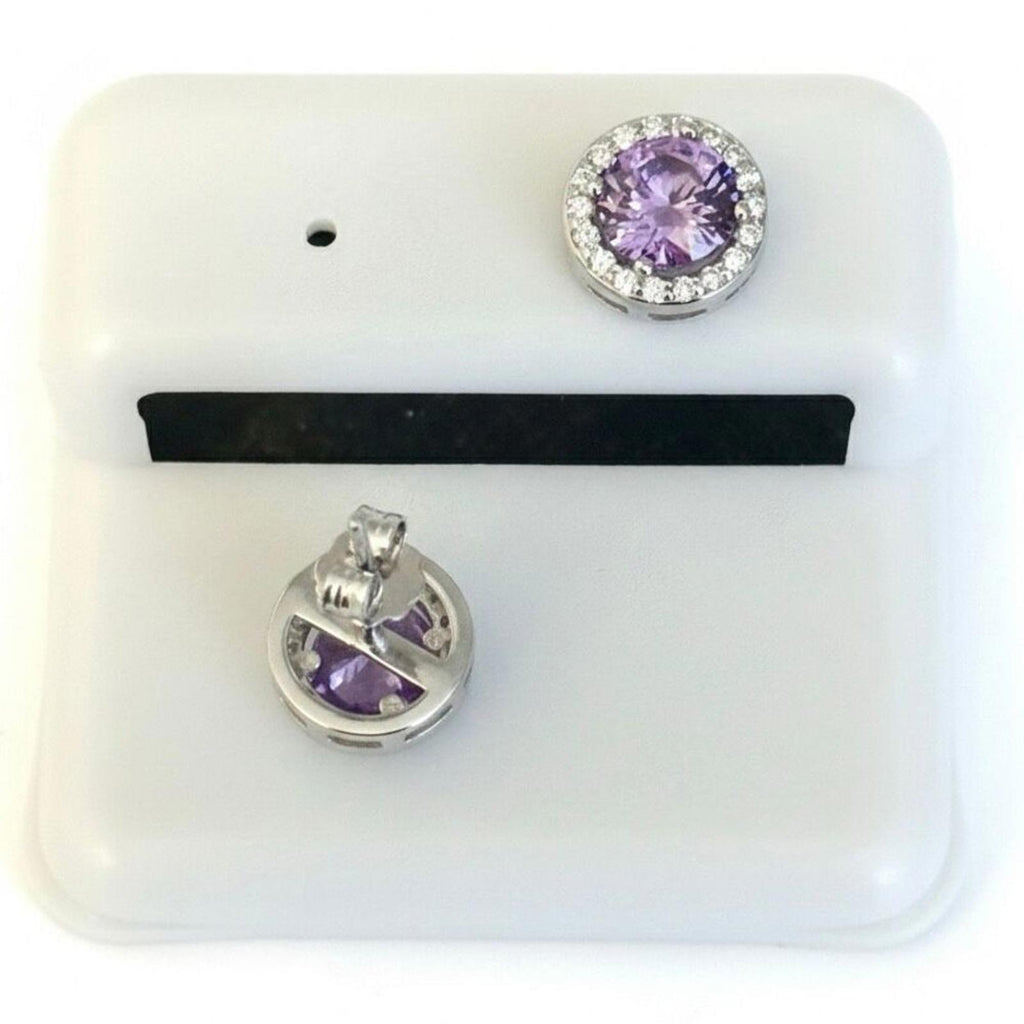 New Amethyst CZ Halo Stud Earrings 925 Sterling Silver Round Brilliant Cut