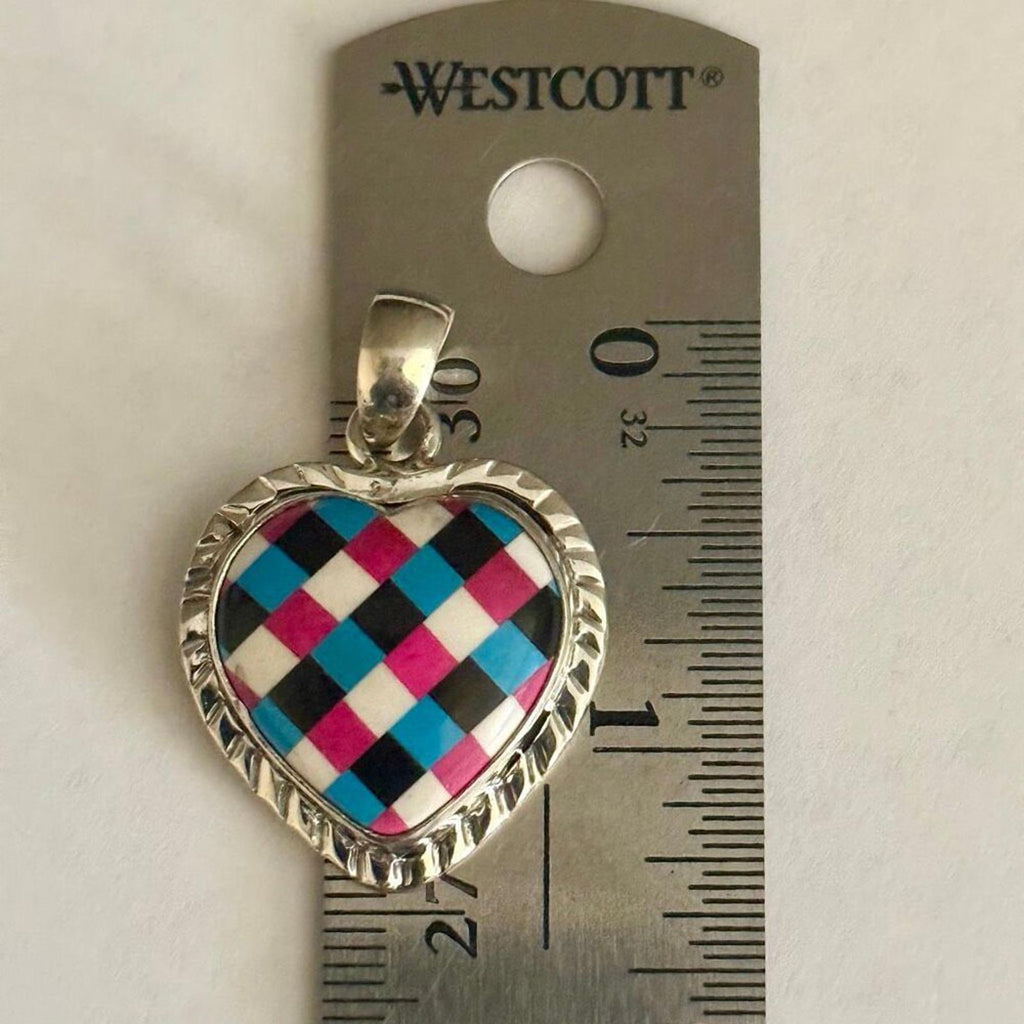 New Multi-Stone Heart Pendant Necklace Sterling Silver Southwest Inlay Artisan