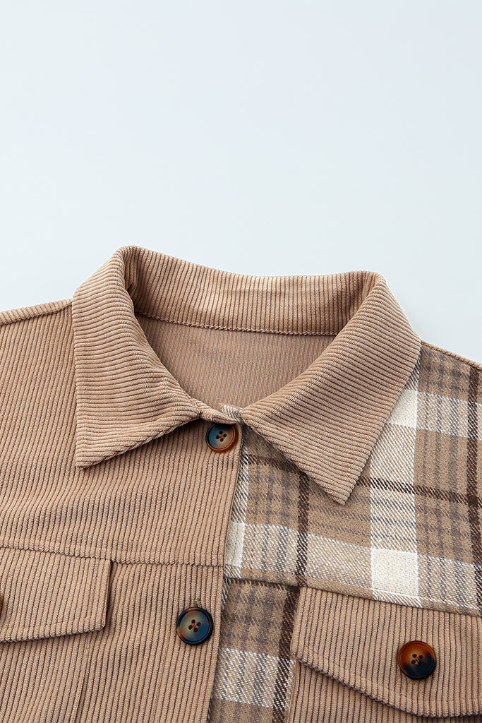 Plaid Corduroy Dropped Shoulder Jacket