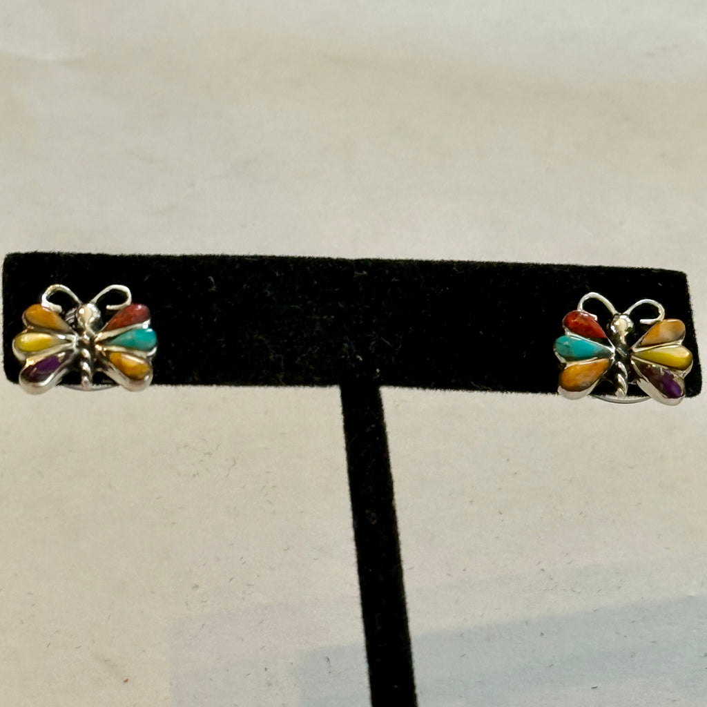 Southwestern Multi Gemstone Inlay Butterfly Dainty Stud Push Back Earrings