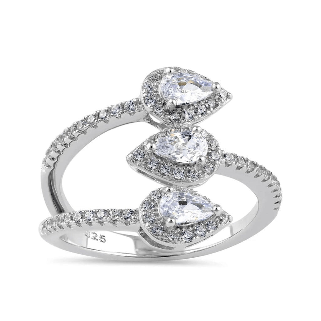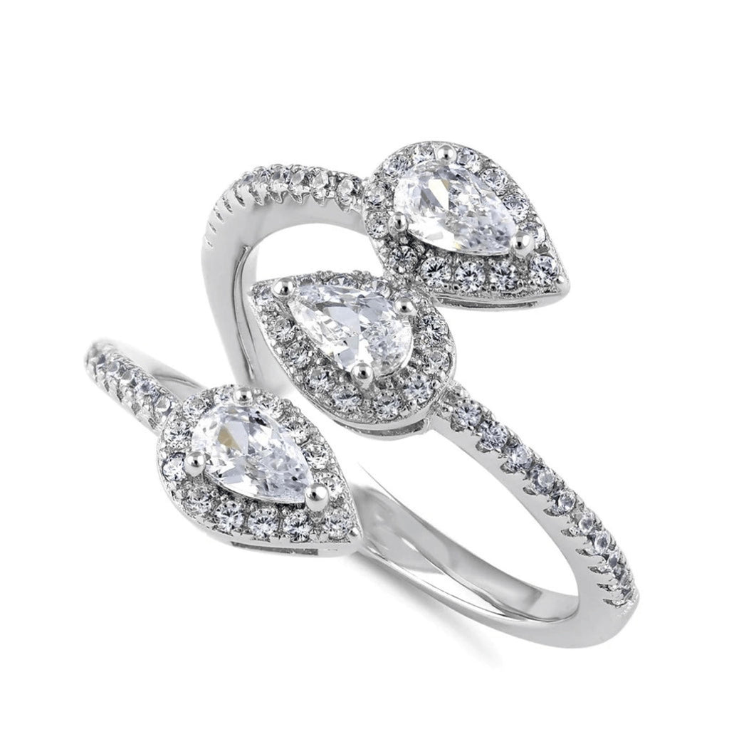 Sterling Silver Triple Pear Halo Wrap CZ Ring Size 6 New