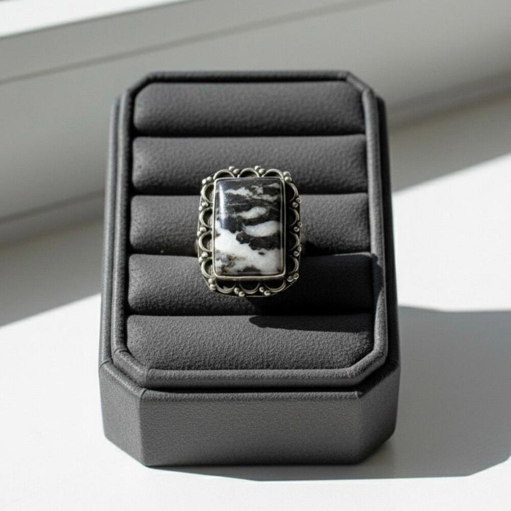 Elevate your style with our Stunning Natural Oval White Buffalo Ring.