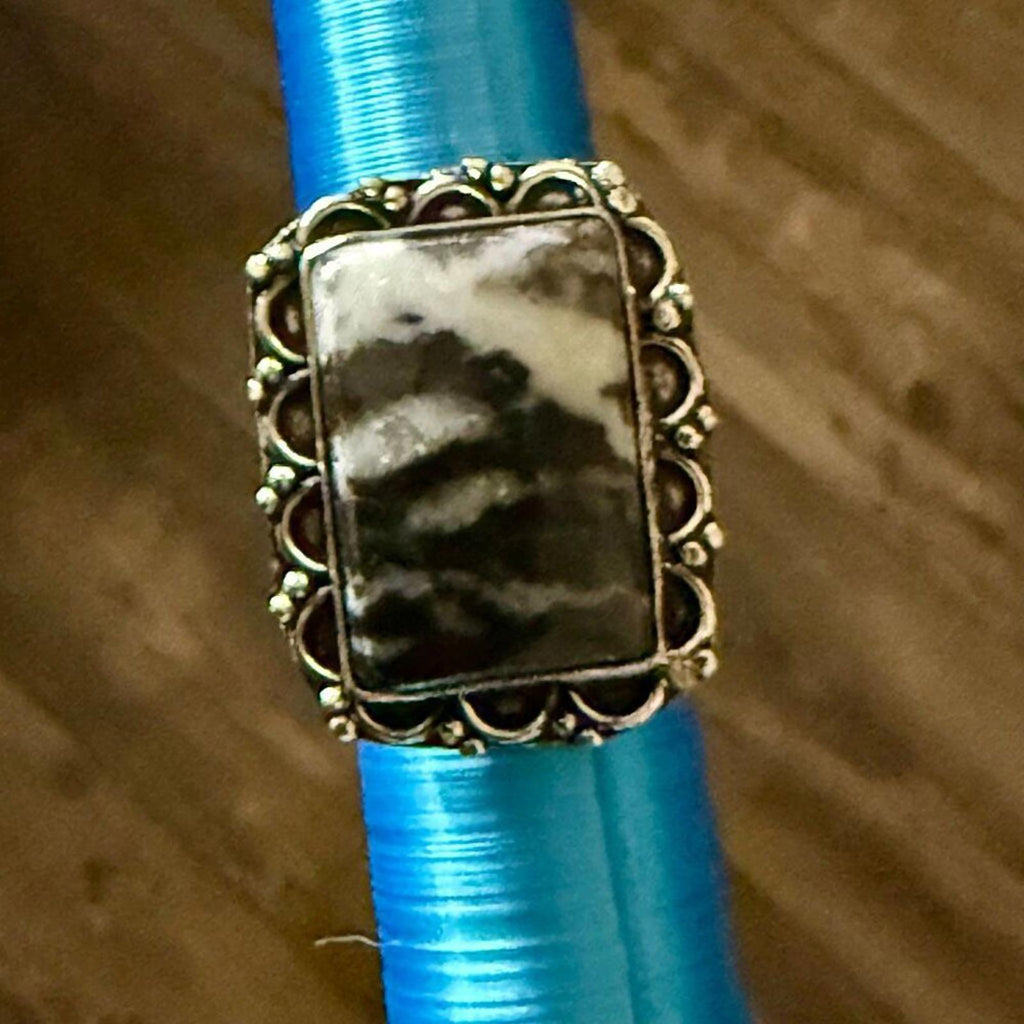 Stunning Natural White Buffalo Rectangular Statement Ring Southwestern Size 8