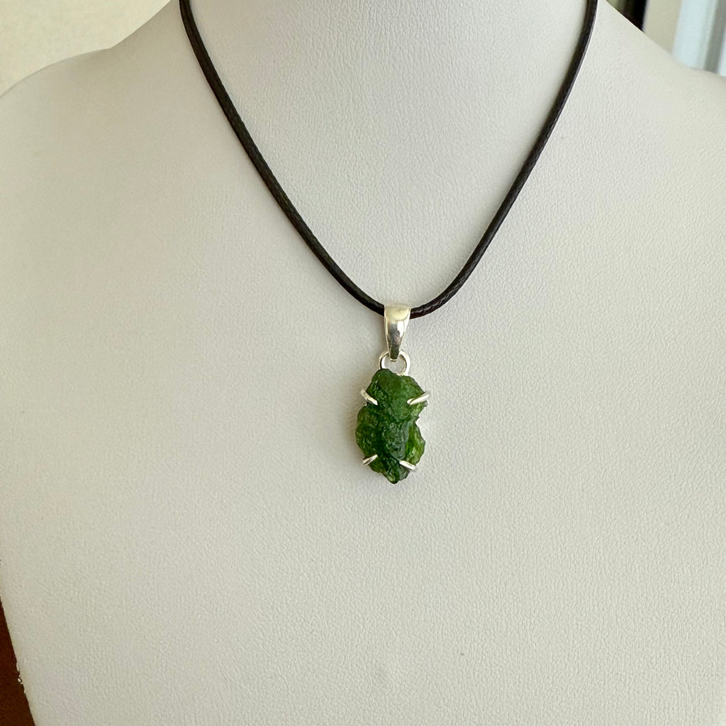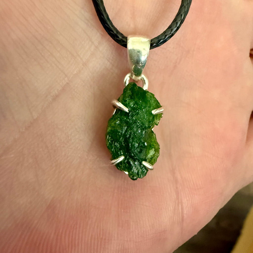 Unique Natural Raw Chrome Diopside Necklace Pendant in Sterling Silver
